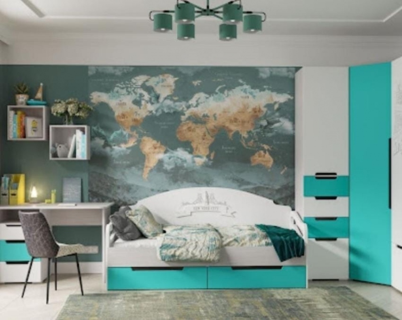 Стол письменный Стендмебель Миа, 112х60x75 см, белый, бирюзовый
