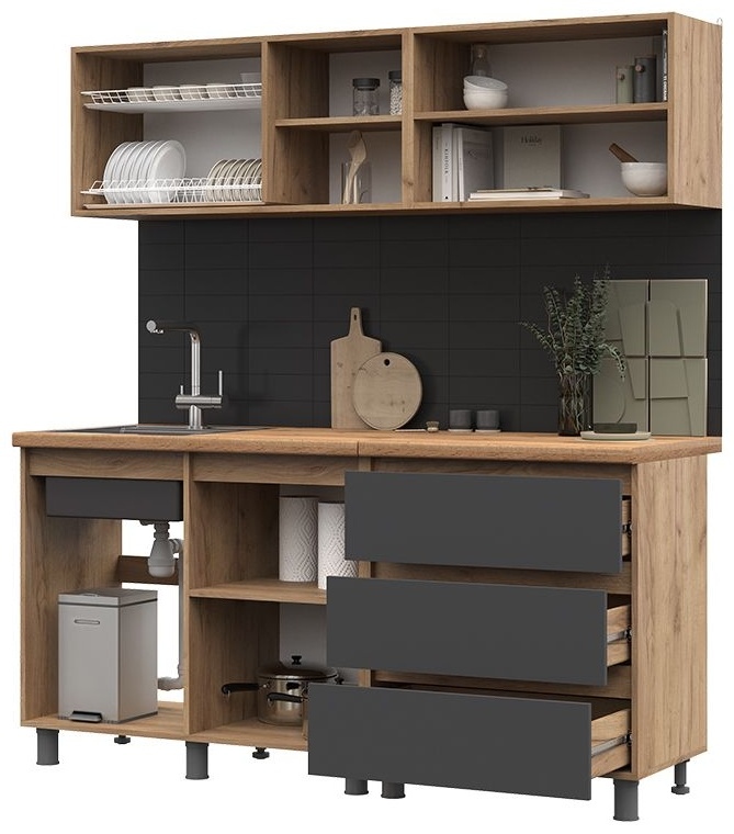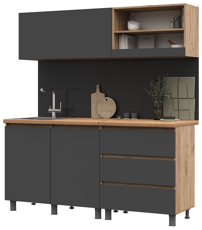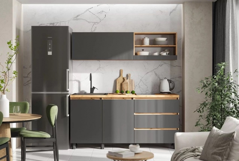 Хелен Кухня 1,7 Серый графит/ Крафт золото