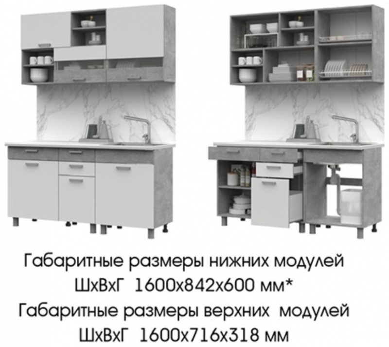 Кухня Денвер 1.6 Белый Ателье светлый