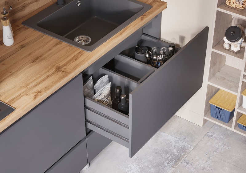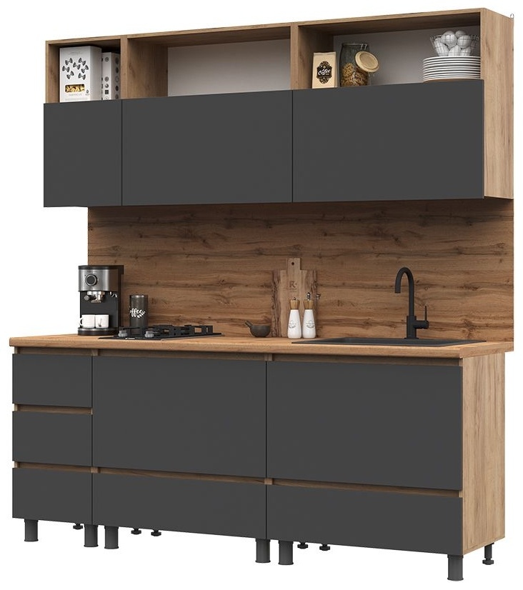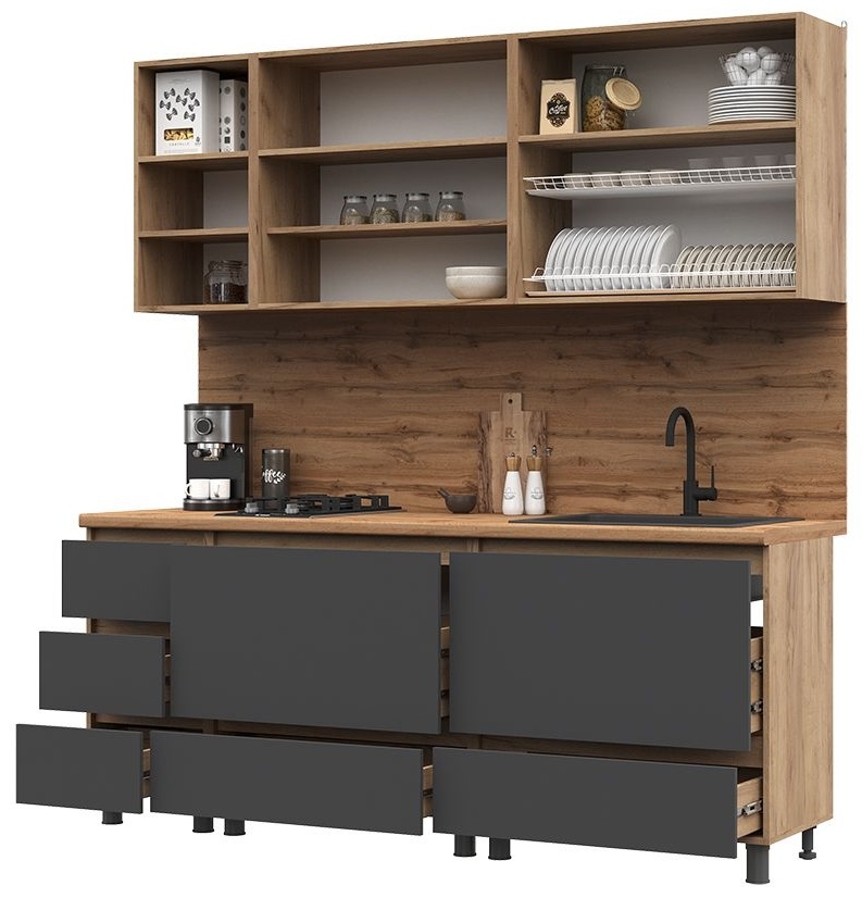 Кухонный гарнитур Хелен, 2 м., К-Дуб крафт золото/Ф-Серый графит