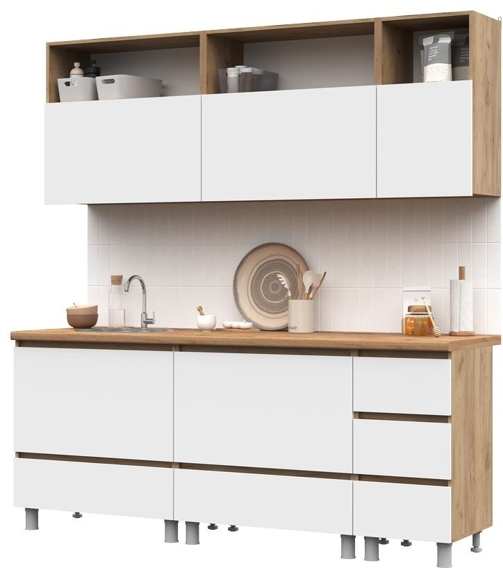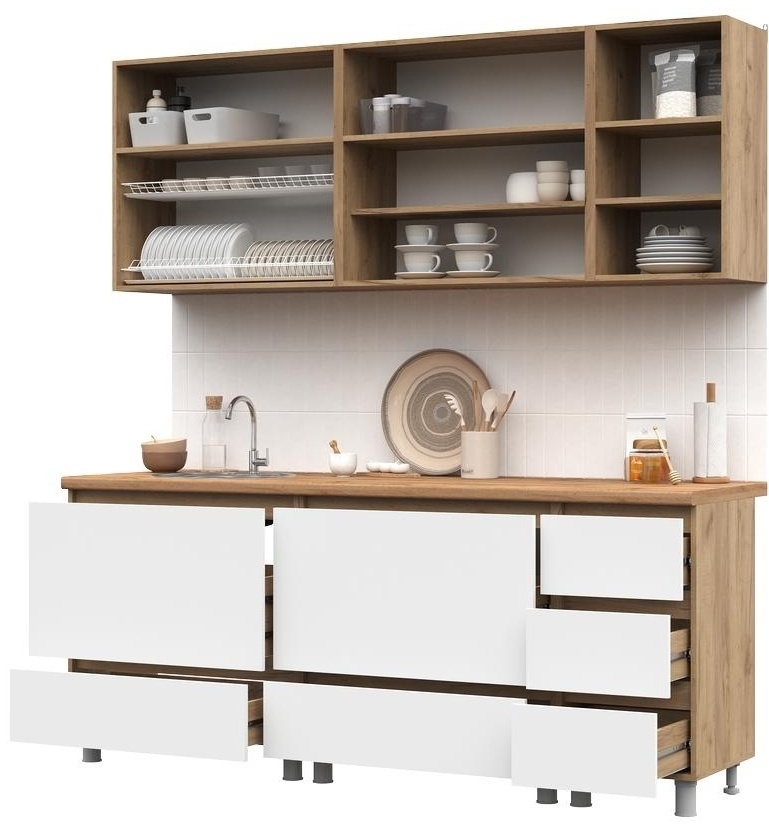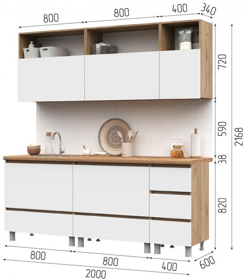 Кухонный гарнитур Стендмебель Хелен, 2 м., белый, Крафт золото/Белый
