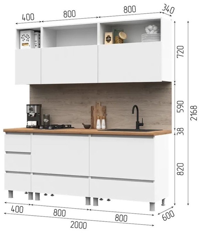 Кухонный гарнитур Стендмебель ,Хелен 2,0 м белый