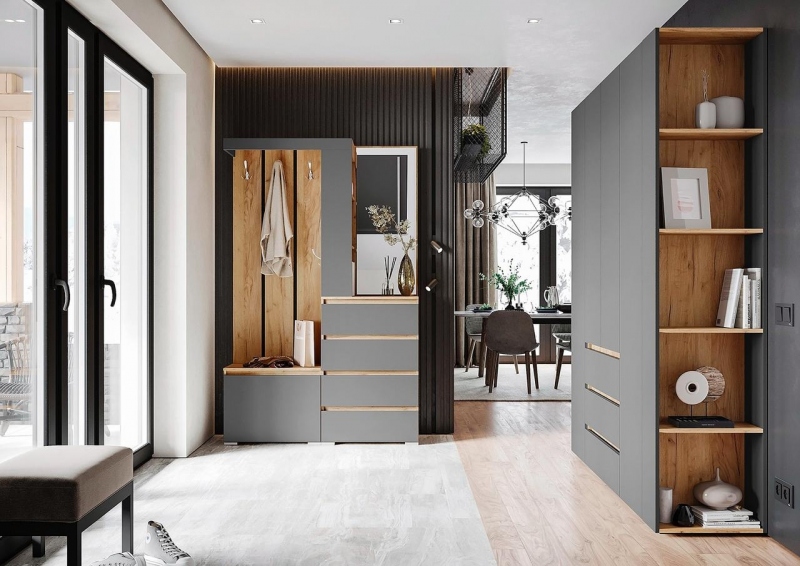 Хелен Прихожая ПР01 Дуб крафт золото Серый графит