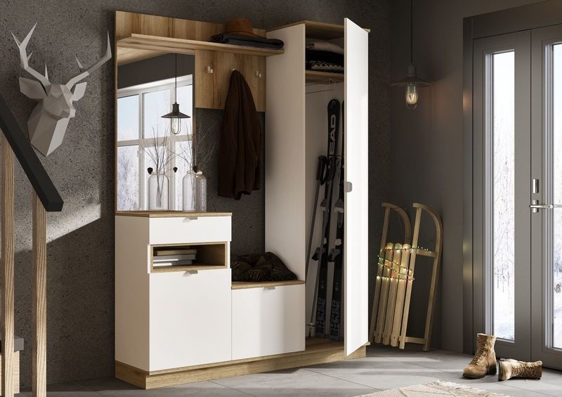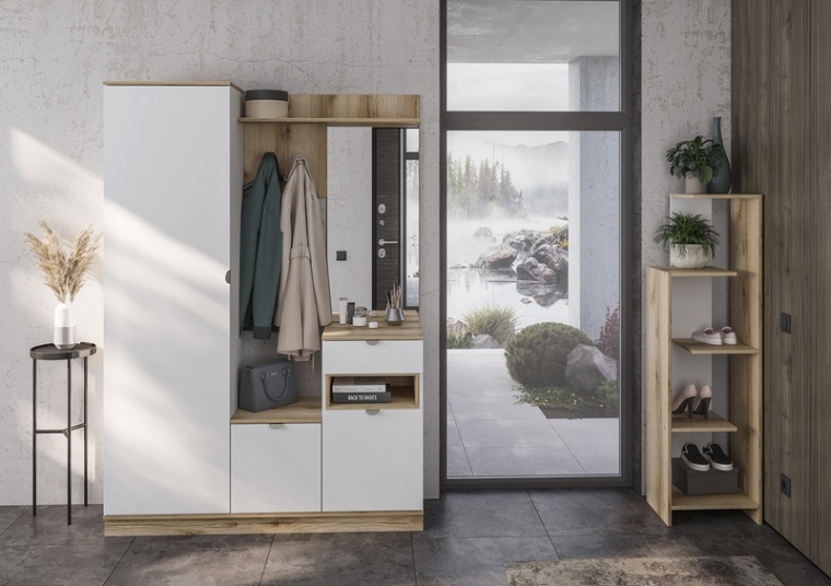 Юкки Прихожая ПР1400, К-Дуб делано/Ф-Белый