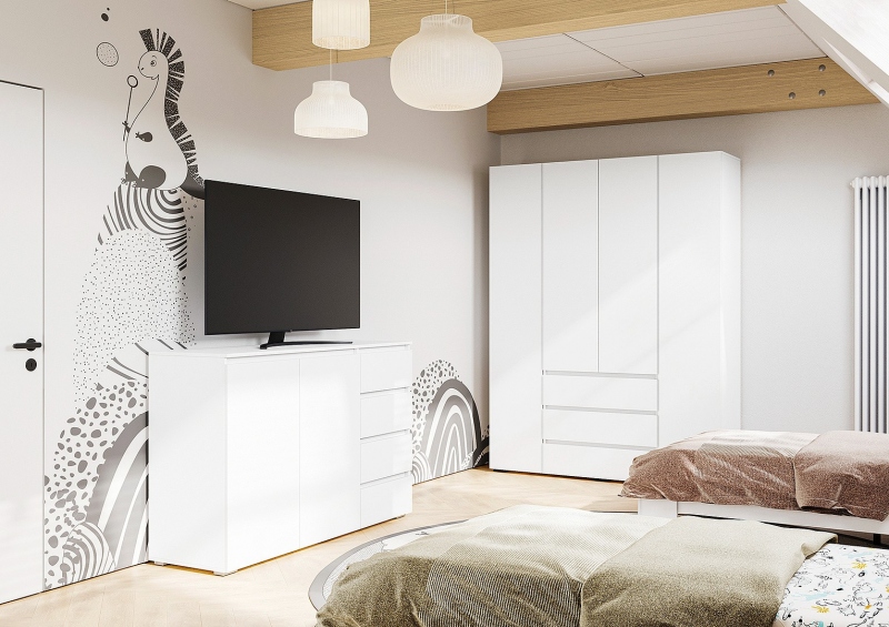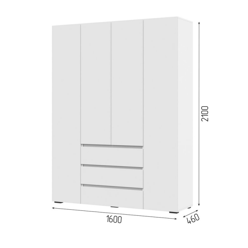Хелен Шкаф 4Д с ящиками ШК05, К-Ф Белый