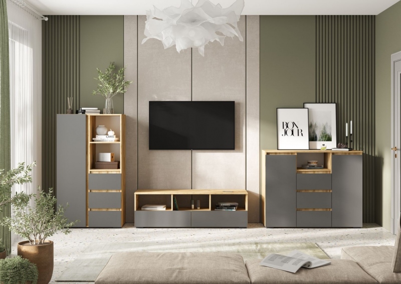 Хелен Комод КМ01 1202 Дуб крафт золото Серый графит