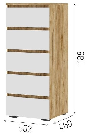 Хелен Комод КМ03 502 5 ящ Дуб крафт золото Белый