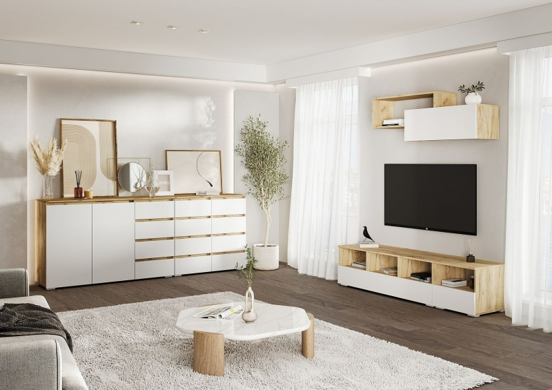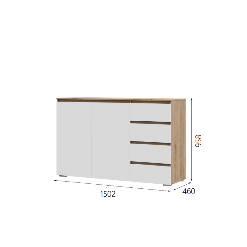Хелен Комод КМ06 4ящ , Ф-Белый/К-Дуб крафт золото