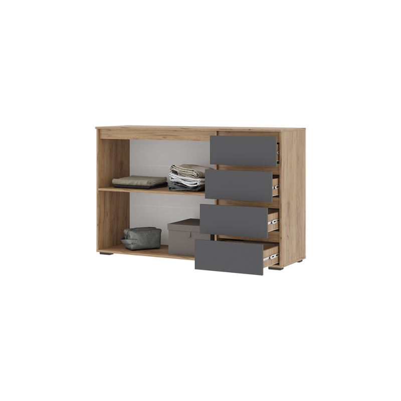 Хелен Комод КМ06 4ящ, Ф-ГРАФИТ СЕРЫЙ/К-Дуб крафт золото