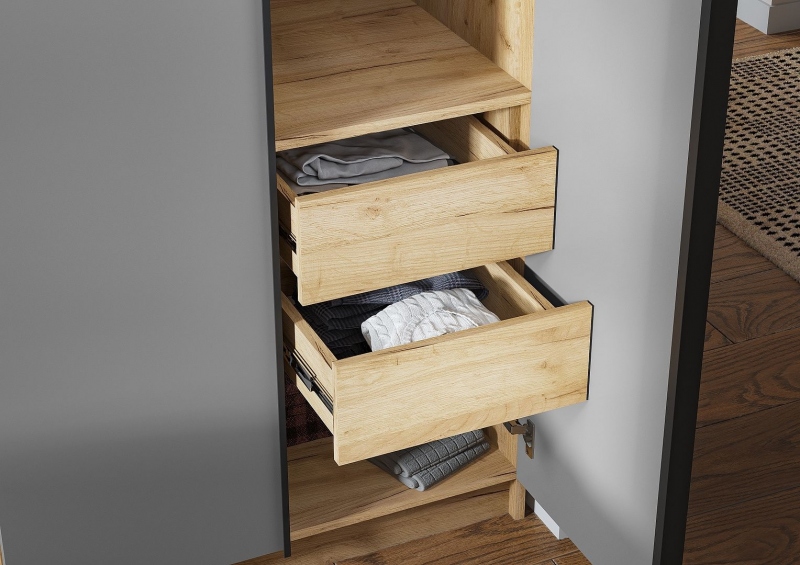 Лион ШК-02 Шкаф 3Д, К-Дуб крафт золото/Ф-Графит серый