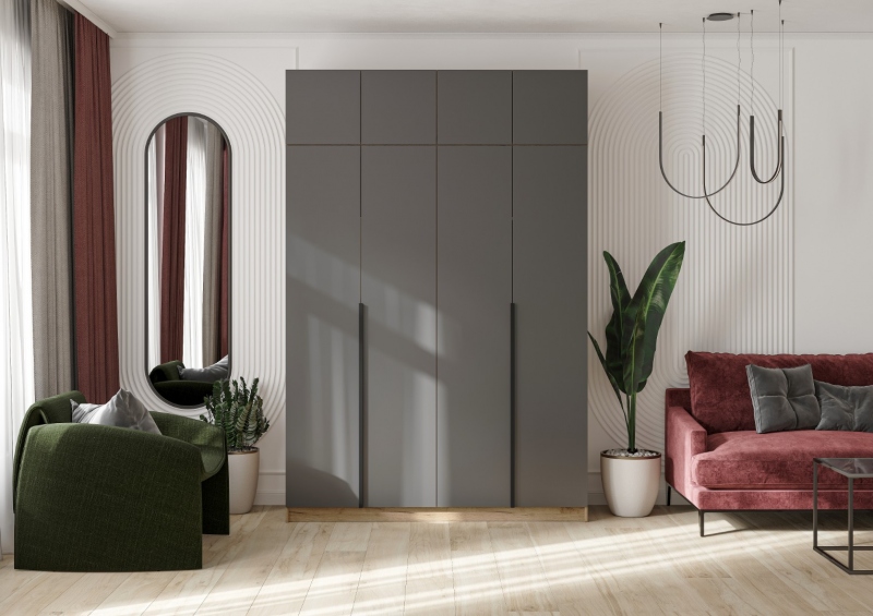 Лион ШК-03 Шкаф 4Д с антресолью Дуб крафт золото Графит серый